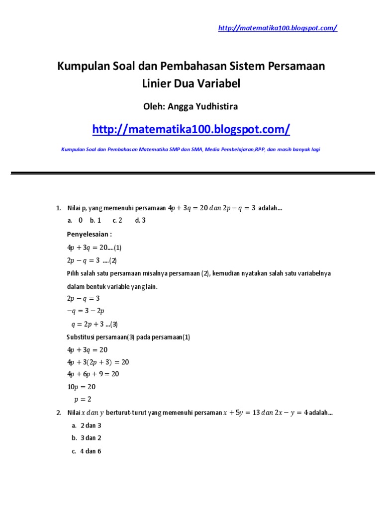 Contoh Soal Cerita Sistem Persamaan Linear Dua Variabel ...