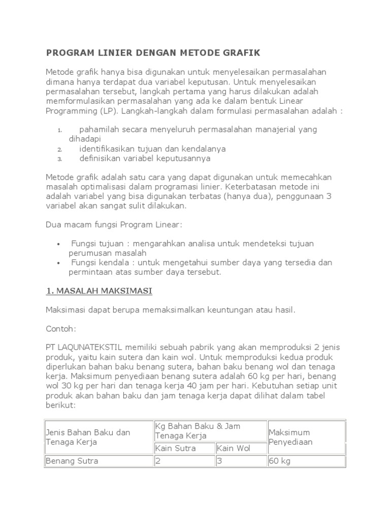 Contoh Soal Riset Operasi Program Linear Metode Grafik ...